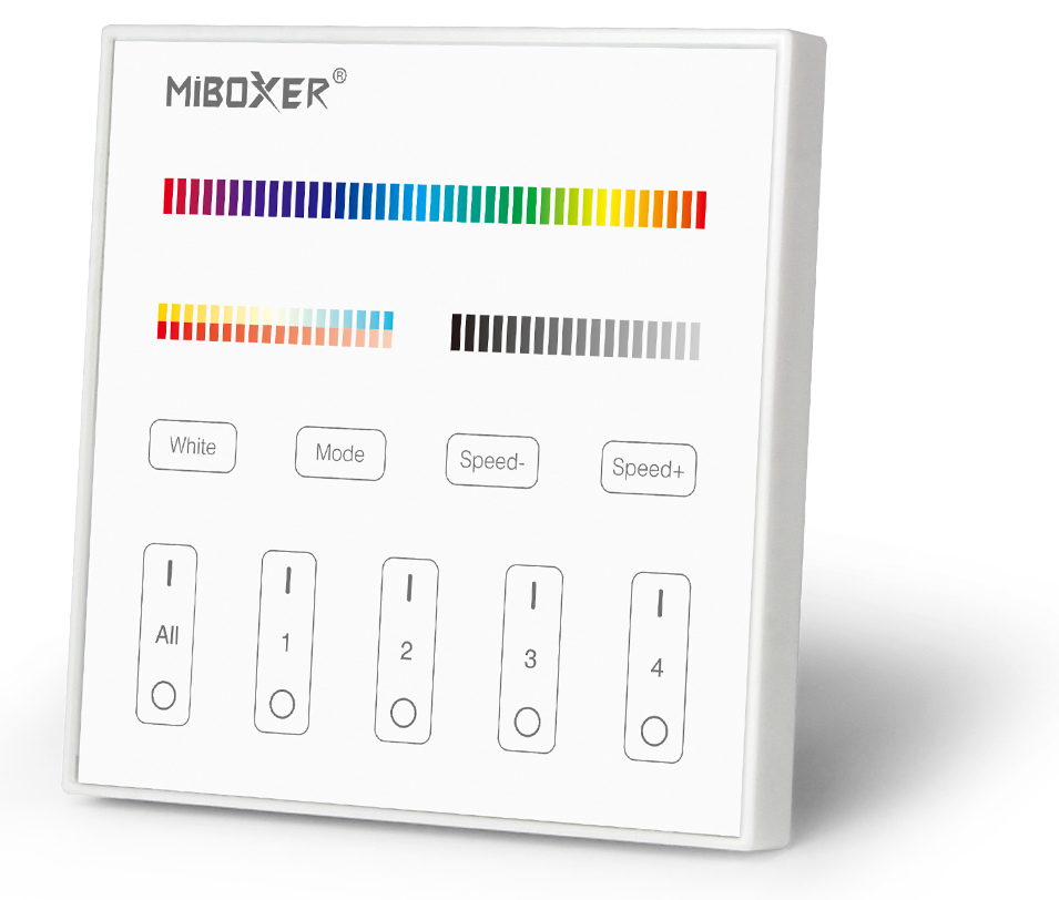 Der MiBoxer T4 vereint Vier-Zonen-Steuerung, Netzanschluss und Funktechnik in einem modernen Wandpanel. So steuern Sie mehrere Lichtbereiche zentral, ohne zusätzliche Fernbedienungen – ideal für stilvolle, professionelle Beleuchtungskonzepte im privaten und gewerblichen Bereich.
