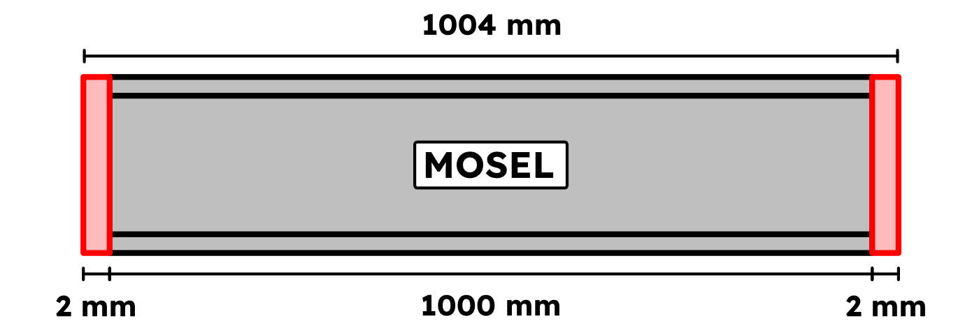 Durch die Verwendung von Endkappen erhöht sich die Gesamtlänge des Profils um insgesamt 4 mm (je Seite 2 mm). |