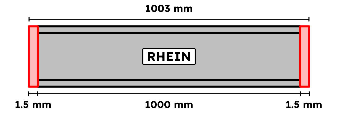 Durch die Verwendung von Endkappen erhöht sich die Gesamtlänge des Profils um insgesamt 3 mm (je Seite 1,5 mm). |