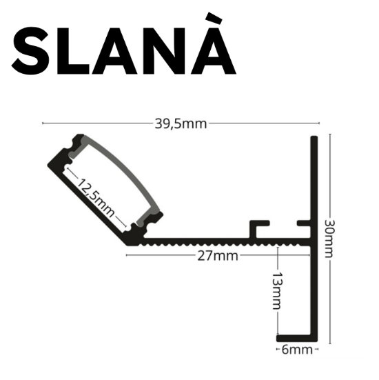 QuerschnittDas Aluminiumprofil ist mit allen Arten von LED-Streifen bis zu einer Breite von 12 mm kompatibel. Merkmale :