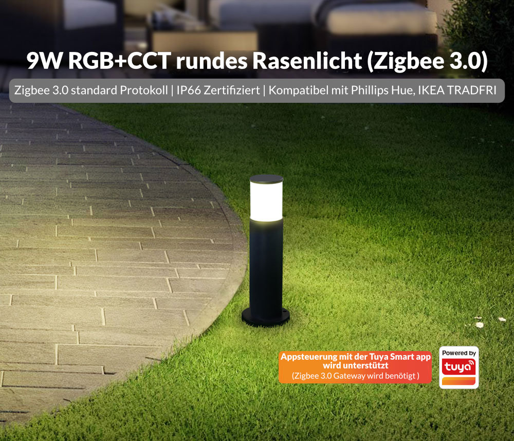 | Produktname | 9W RGB+CCT LED Runde Rasenleuchte (Zigbee 3.0) DC24V |