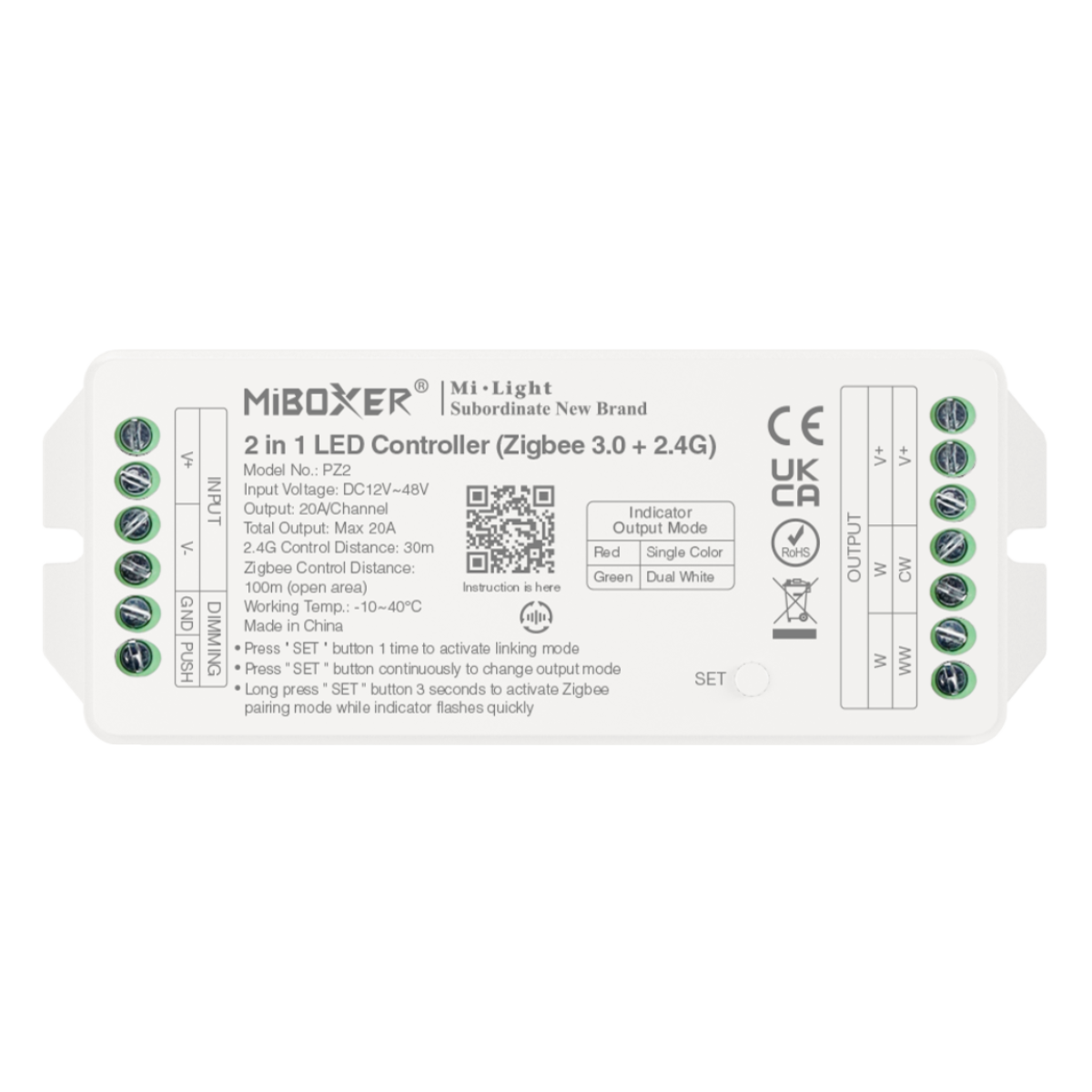 2-in-1 LED-Controller | Einfarbig | CCT | Zigbee 3.0 & 2,4GHz | Miboxer | PZ2