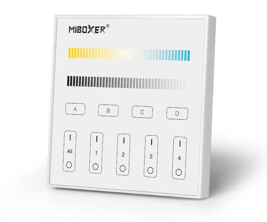 - Vier Zonen & vier Szenen abrufbar: Das Panel bietet die Steuerung von bis zu 4 Kanälen/Zonen sowie 4 voreingestellte Szenen – ideal für komplexere Anwendungen.