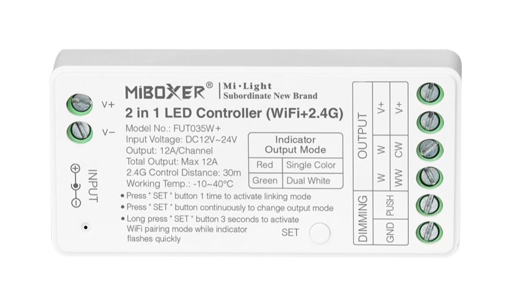 2-in-1 LED-Controller | Einfarbig | CCT | WLAN + 2,4GHz | Miboxer | FUT035W+