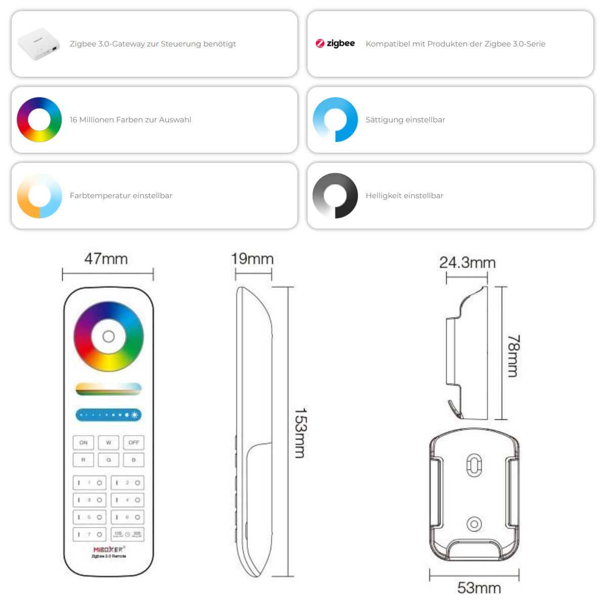 7 Zonen Fernbedienung | Zigbee 3.0 | RGB+CCT | Weiß | Miboxer | FUT089Z
