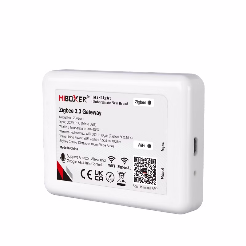 Das Zigbee Gateway ZB-BOX1 von MiBoxer ist die intelligente Schaltzentrale für Ihr modernes Smart Home. Es verbindet Ihre LED-Streifen, Leuchten und Controller zuverlässig mit Ihrem bestehenden Netzwerk und macht die Steuerung Ihrer Beleuchtung so einfach wie nie zuvor.